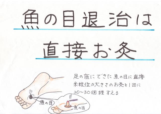 お灸の熱が、魚の目の原因となっている硬い角質の芯に働きかけ、体の自然な治癒力を引き出すことで改善へと導きます。